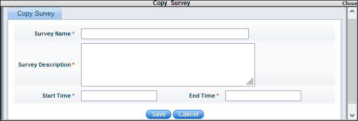 Enter the new 'Survey Name', 'Survey Description', 'Start Time' and 'End Time'.