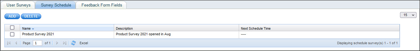 To schedule a survey, click on the 'Survey Schedule' tab. The listing of scheduled surveys is displayed.