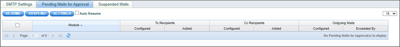Click on 'Suspended Mails' tab to view the suspended mails.