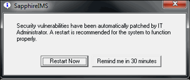 The following pop-up is displayed in the end user system if the default action is 'Restart'.