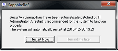 The end user can choose to 'Restart' or click on 'Remind me'. If no action is taken, then the system automatically restarts at the specified time.